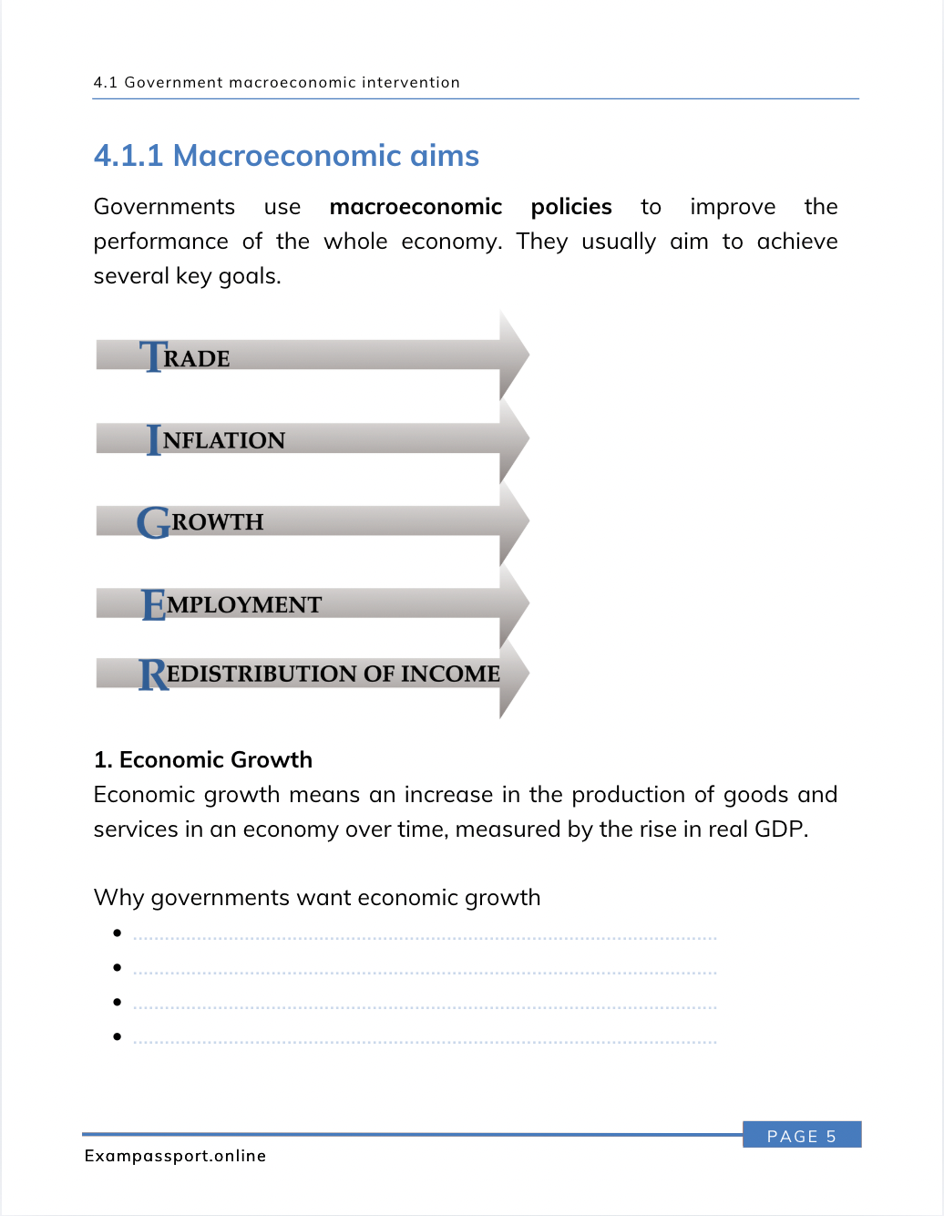 This eBook is designed to support students with Topic 4 Government and the macroeconomy of the CIE IGCSE Economics course. It is packed with structured knowledge-building and retrieval activities that directly match the syllabus requirements.